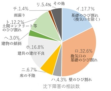 このように住宅の沈下障害は「基礎の損傷」に関する障害が多く、場合によっては深刻な問題となる場合もあります。