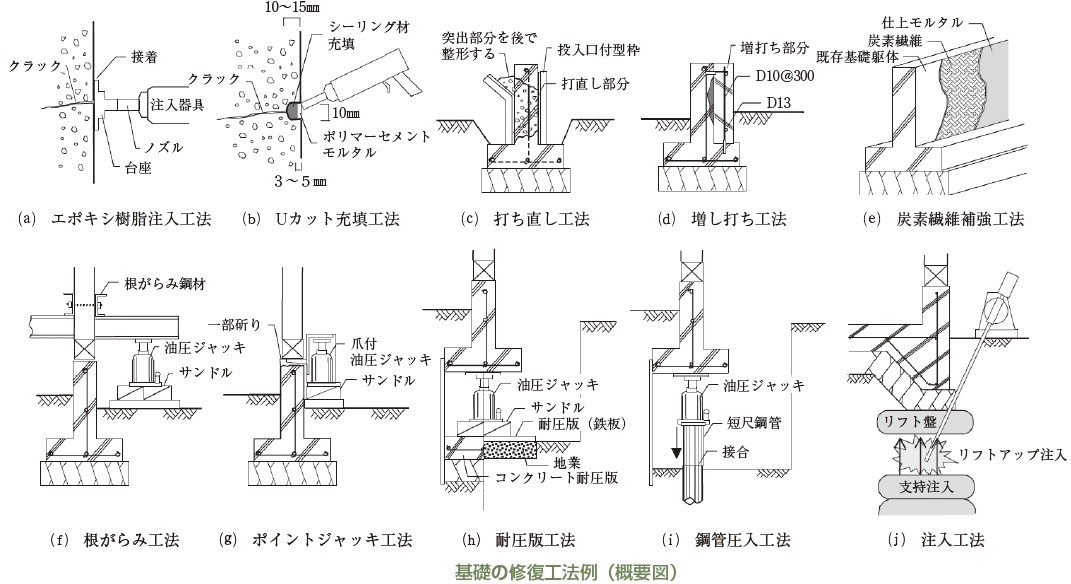 沈下障害を考える場合には、この「沈下形状」の判断と識別が重要になり、この時には「基礎の損傷の有無」が大きなポイントになります。