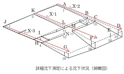 沈下障害を考える場合には、この「沈下形状」の判断と識別が重要になり、この時には「基礎の損傷の有無」が大きなポイントになります。